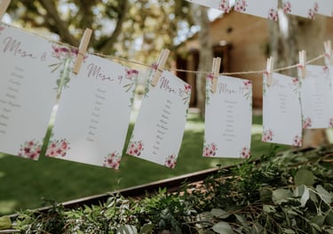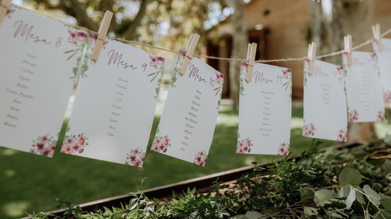 El seating plan es el corazón de la organización y una oportunidad para sorprender. Lo convertimos en una pieza decorativa que refleje vuestra esencia y deje a todos boquiabiertos.