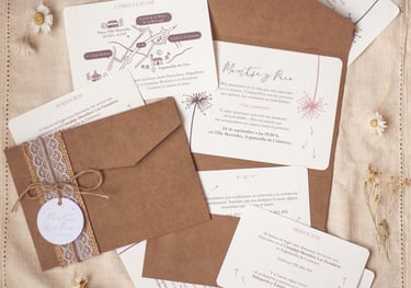 Si sois de los que creen en la magia de los trazos y los colores, este es vuestro sitio. Creamos ilustraciones personalizadas que convierten vuestras invitaciones en pequeñas obras de arte llenas de emoción.