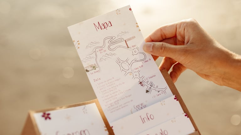 ¡Que nadie se pierda el camino al “sí, quiero”! Creamos mapas personalizados con encanto, llenos de guiños y detalles que harán sonreír a vuestros invitados.